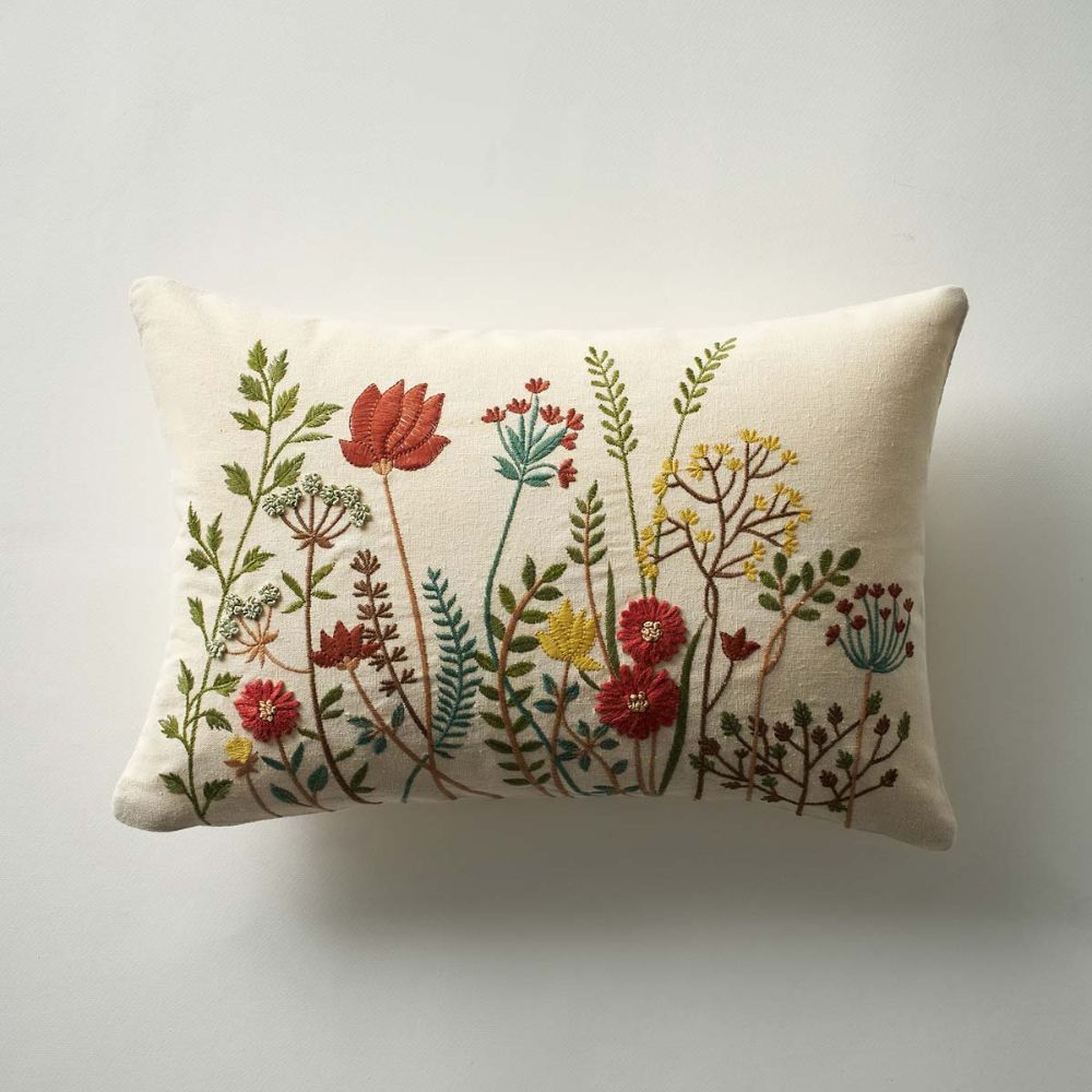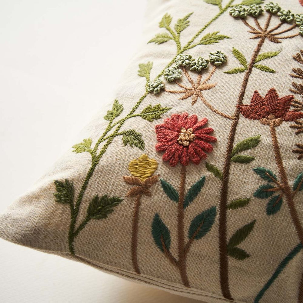 Διακοσμητική μαξιλαροθήκη από την εταιρεία Gofis Home σε εκρού χρώμα με πολύχρωμο φλοράλ σχέδιο. Είναι κεντημένη με χειροποίητες λεπτομέρειες σε ύφασμα σύνθεσης 80% βαμβάκι και 20% polyester. Διαθέτει φερμουάρ για να αφαιρείται η γέμιση. Ιδανική για να ανανεώσει τη διακόσμηση του σαλονιού σας.