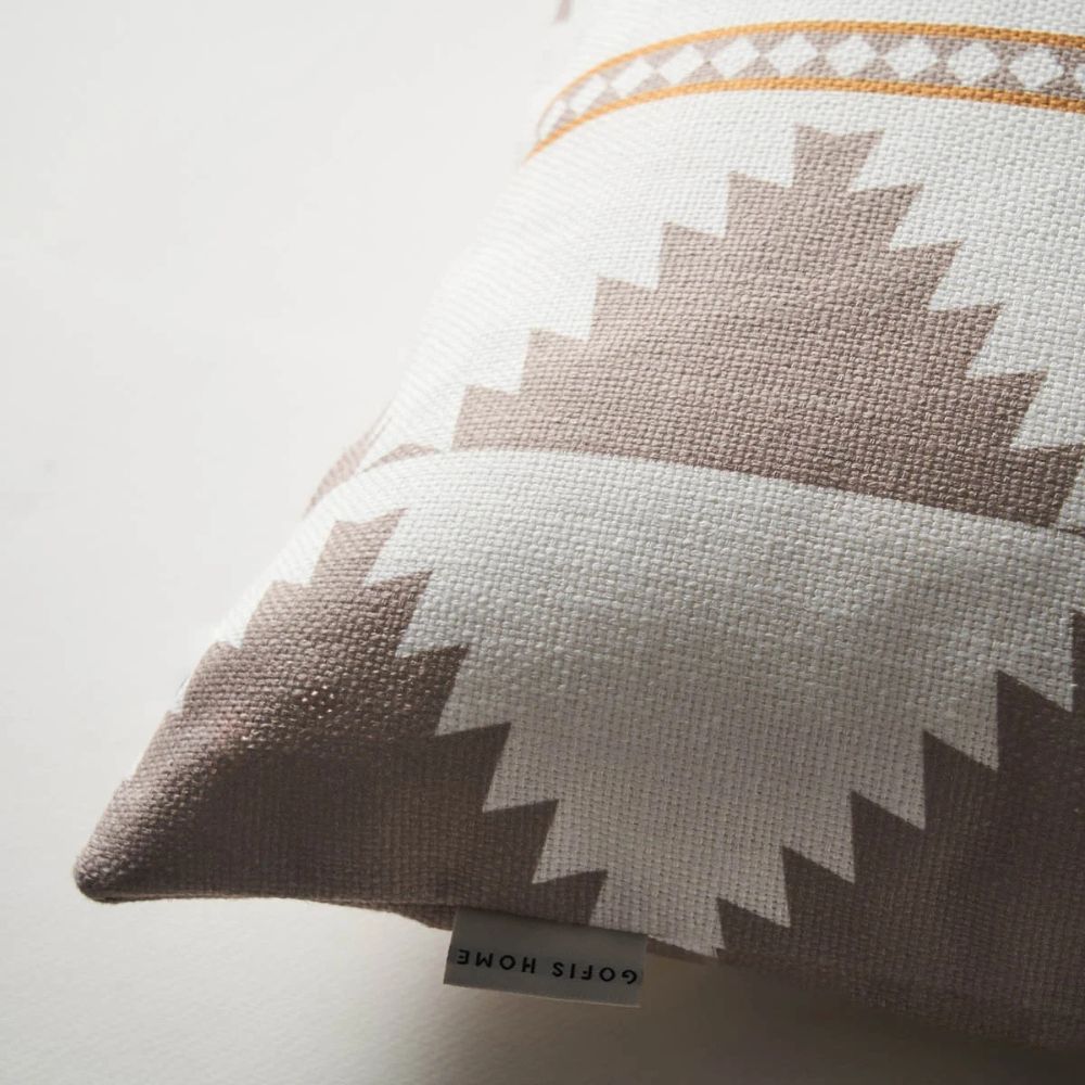 Διακοσμητική μαξιλαροθήκη από την εταιρεία Gofis Home σε εκρού και μπεζ αποχρώσεις με γεωμετρικό σχέδιο. Είναι κατασκευασμένη από 15% λινό και 85% βαμβάκι και διαθέτει φερμουάρ. Ιδανική για να δώσει μία boho πινελιά στο χώρο σας.