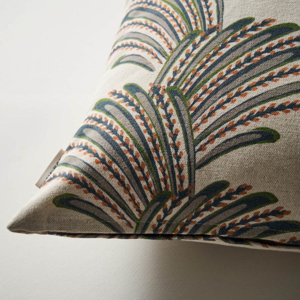 Διακοσμητική μαξιλαροθήκη από την εταιρεία Gofis Home σε εκρού απόχρωση με πράσινες-μπεζ λεπτομέρειες και μοντέρνο σχέδιο. Είναι κατασκευασμένη από 85% βαμβάκι και 15% λινό, με απαλή υφή και ανεξίτηλο τυπωτό σχέδιο. Διαθέτει φερμουάρ για να αφαιρείται η γέμιση. Ιδανικό για να δώσει μία boho πινελιά στο σαλόνι σας.