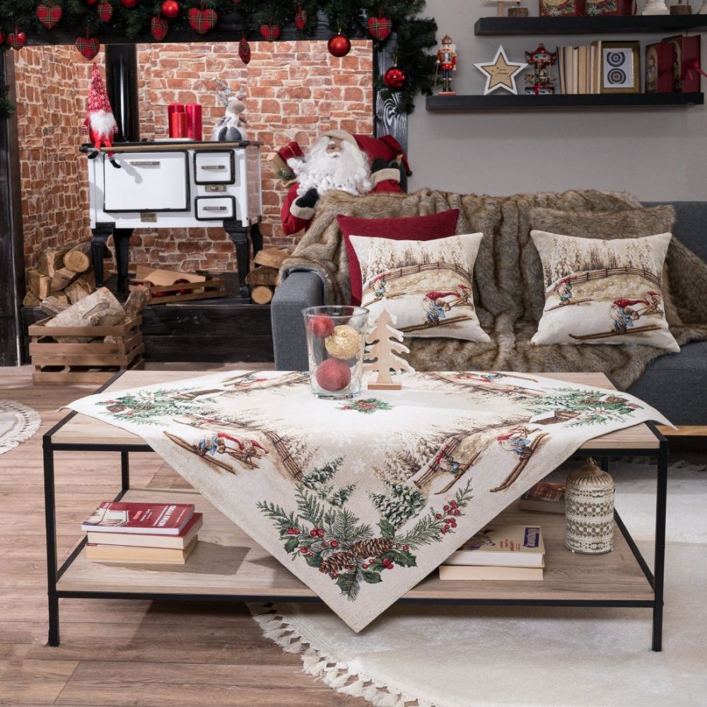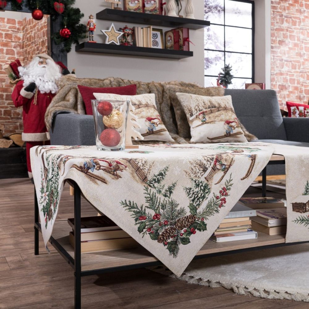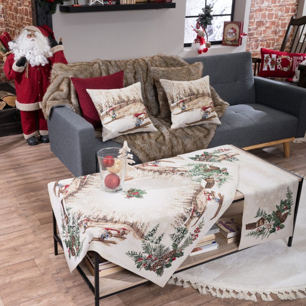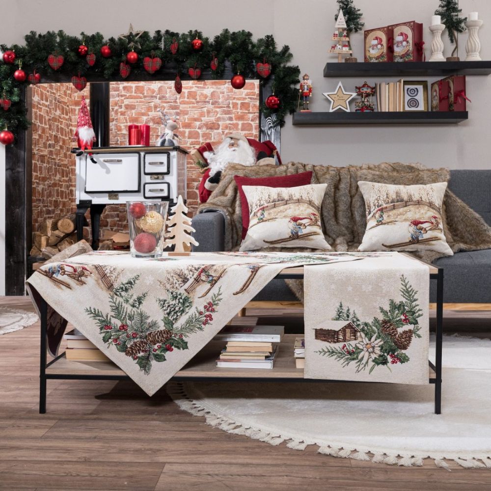 Φέτος τα Χριστούγεννα θα φέρετε τις Άλπεις στο σπίτι σας. Τα ωραιότερα χριστουγεννιάτικα σχέδια θα διακοσμήσουν το σαλόνι σας, την τραπεζαρία σας και την κουζίνα σας. Ζωηρά μα και παστέλ χρώματα θα σας ξετρελάνουν μετατρέποντας το σπίτι σας στο πιο glamour και cozy σκηνικό. Η σύνθεση του υφάσματος αποτελείται από νήματα ακρυλικά σε ποσοστό 40%, βαμβακερά σε ποσοστό 40% και πολυεστερικά σε ποσοστό 20%.Το συγκεκριμένο ύφασμα είναι γνωστό ως στόφα ή δαμάσκο.