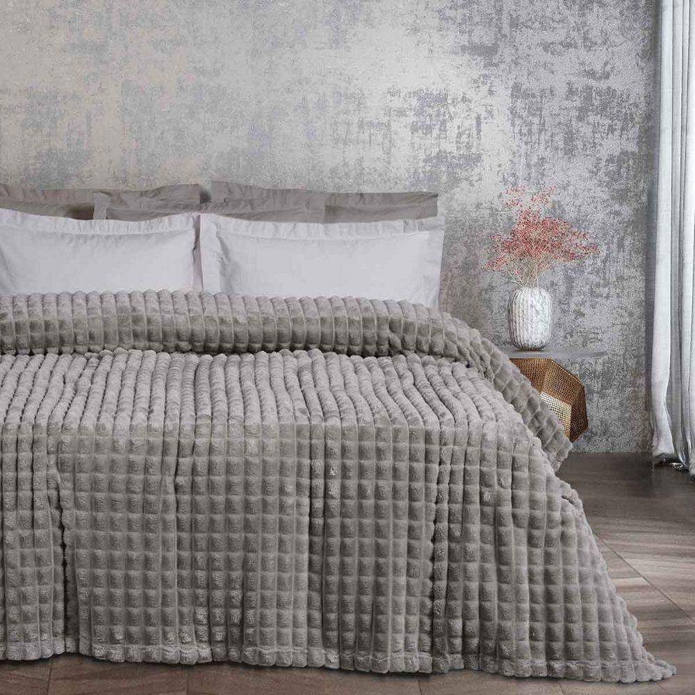 Κουβέρτα fleece μονή σε γκρι χρώμα, με ανάγλυφο σχέδιο από την εταιρεία Das Home. Είναι κατασκευασμένη από 100% polyester βάρους 330gsm που την καθιστά ιδιαίτερα απαλή και πολύ ανθεκτική. Είναι ζεστή, ιδανική για τους φθινοπωρινούς και τους χειμερινούς μήνες.