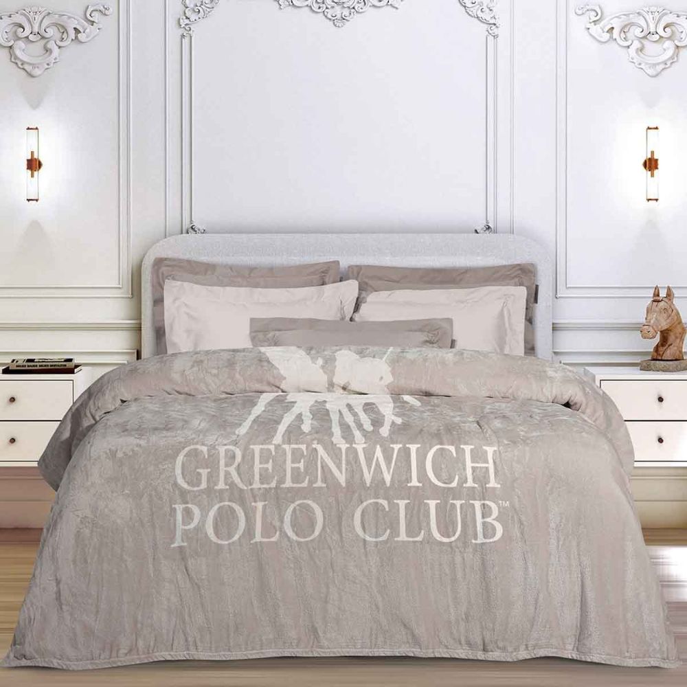 Κουβέρτα υπέρδιπλη με fleece υφή σε μπεζ χρώμα, με το λογότυπο της εταιρείας στο κέντρο από τον οίκο Greenwich Polo. Είναι κατασκευασμένη από 100% polyester βάρους 300gsm που την καθιστά απαλή και ζεστή.