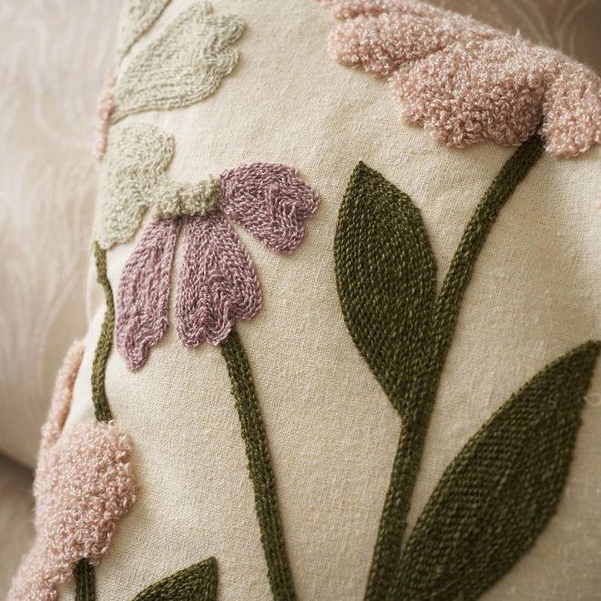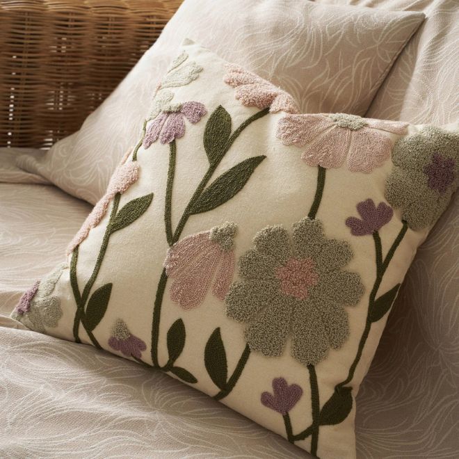 Βαμβακερή μαξιλαροθήκη με ανάγλυφο φλοράλ κέντημα