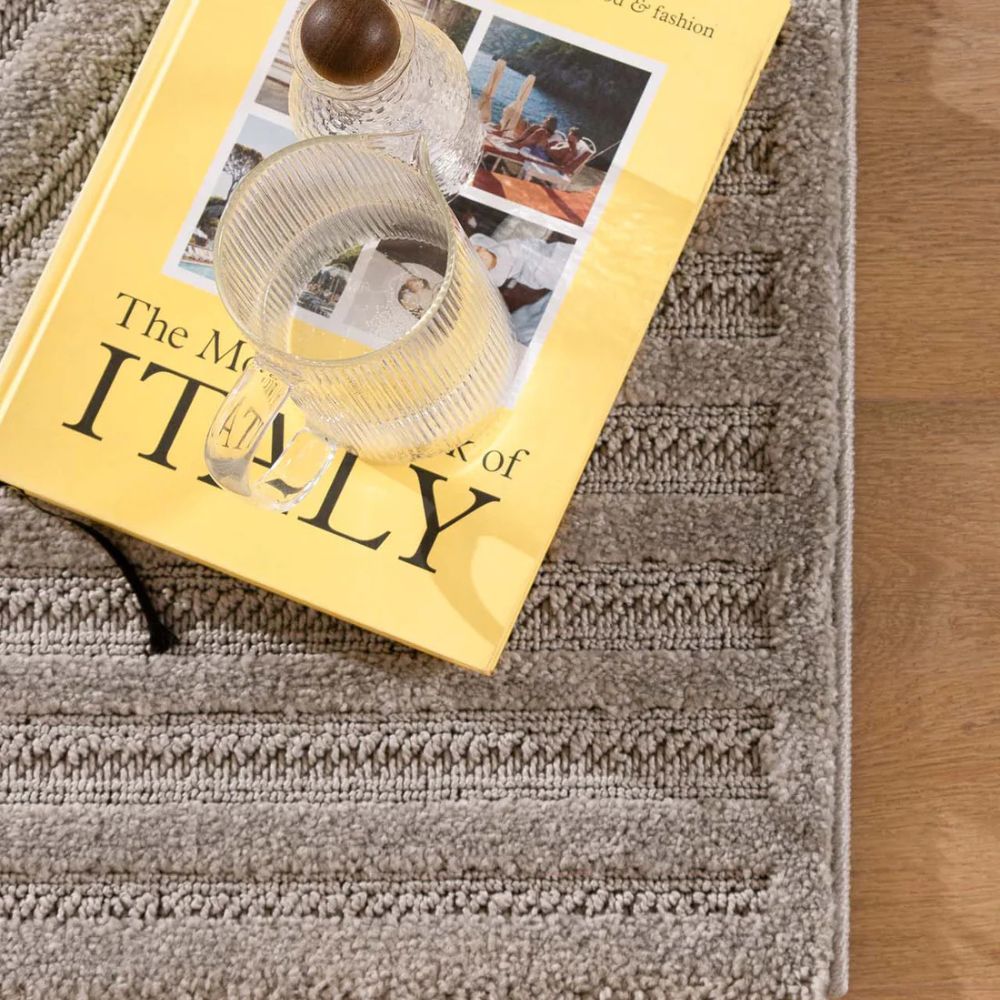 Μοντέρνο χαλί Chiara σε γκρι χρώμα με ιδιαίτερη γραμμική σχεδίαση. Διακρίνεται επίσης για τα υψηλής ποιότητας νήματα και τη μοναδική αισθητική. Ανακαλύψτε τα ιδιαίτερα χαλιά της σειράς της Royal Carpet, Chiara.
