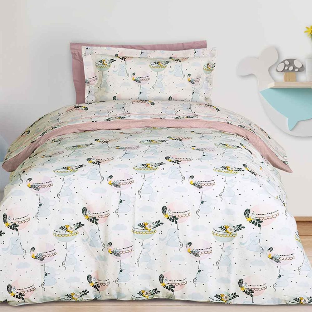 Παιδική παπλωματοθήκη μονή σε σομόν χρώμα, με βεραμάν λεπτομέρειες και σχέδιο κουνελάκια από την εταιρεία Das Home. Είναι κατασκευασμένη από 100% βαμβάκι 160 κλωστών που προσφέρει απαλότητα και ανθεκτικότητα. Στο σετ περιλαμβάνεται η μαξιλαροθήκη φάκελος. Συνδιάστε το με τα υπόλοιπα είδη της ίδιας σειράς για ένα ολοκληρωμένο αποτέλεσμα.