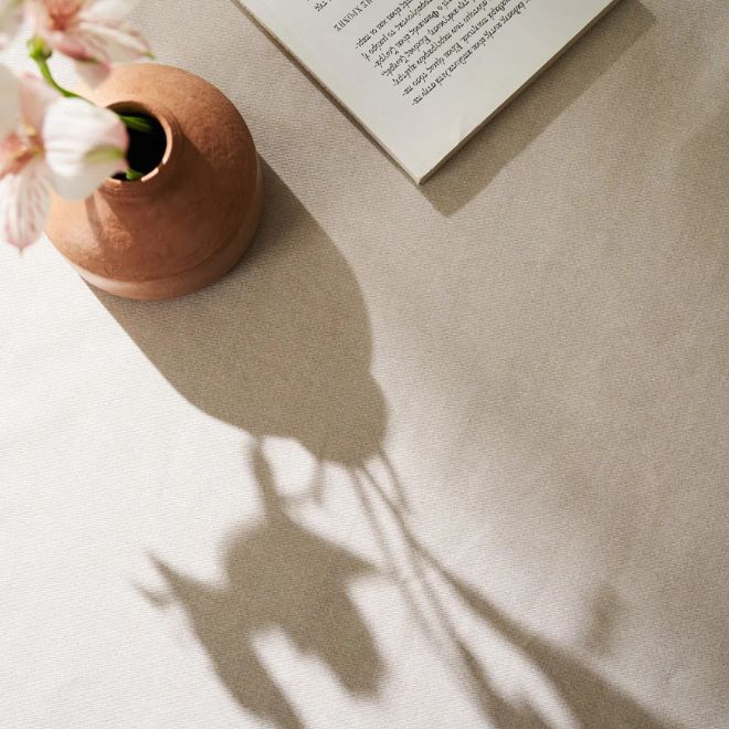 Αλέκιαστο τραπεζομάντηλο με επεξεργασία “teflon”. Το ύφασμα διατηρεί την μαλακή και φυσική του υφή ενώ ταυτόχρονα γίνεται αδιάβροχο και μπορεί να προστατευτεί από τους λεκέδες.