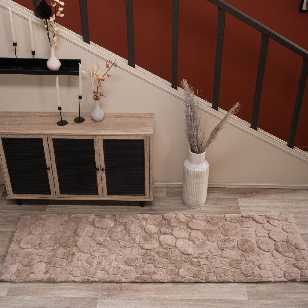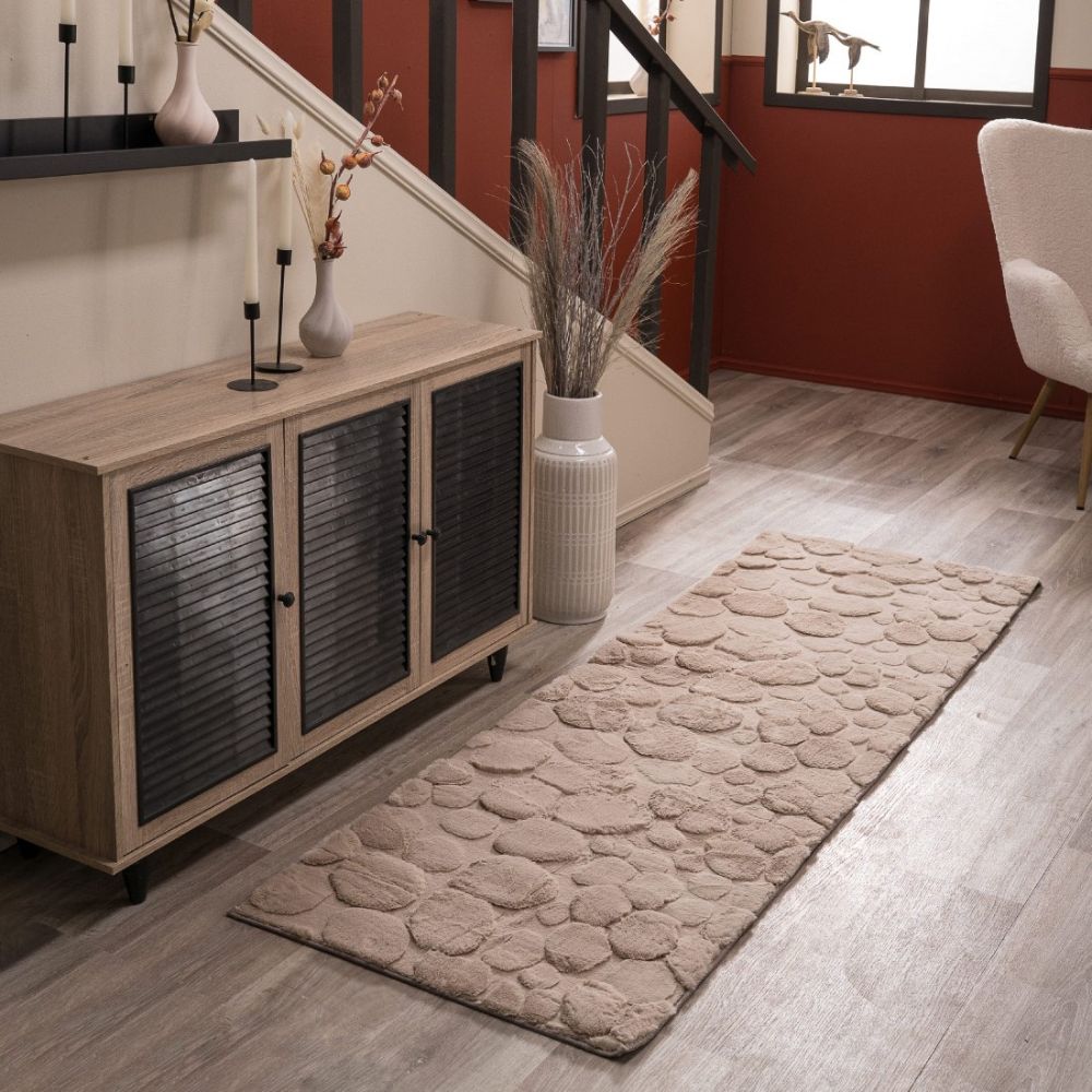 Μοναδικά απαλά γούνινα χαλιά, σε βοτσαλωτό σχέδιο, κατασκευασμένα από 100% συνθετική γούνα. Εξαιρετική απαλή υφή που μιμείται ακριβώς την γούνα κουνελιού. Αναβαθμίζουν την αισθητική του χώρου και διατίθενται σε πέντε παστέλ αρμονικές αποχρώσεις. Δεν γλιστράνε χάρη στην αντιολισθητική επιφάνεια που διαθέτουν. Είναι ελαφριά, εύκολα στη χρήση και μπορούν να τοποθετηθούν σε όλους τους χώρους του σπιτιού.